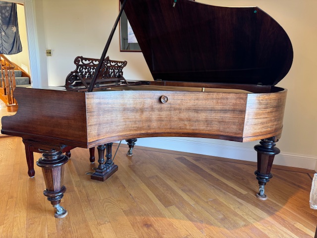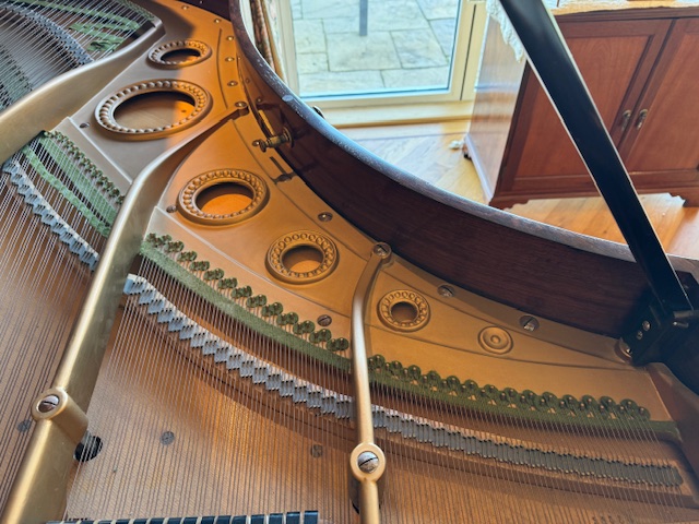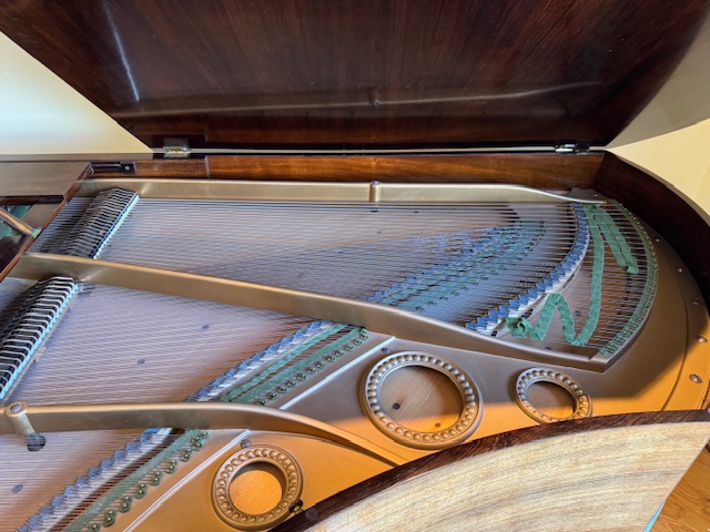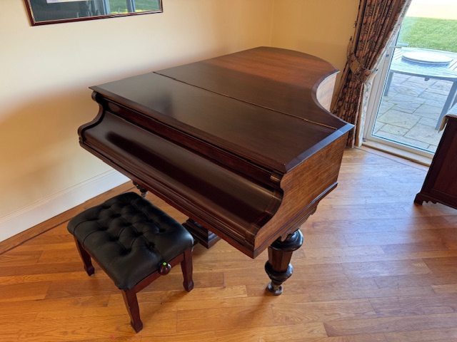 This particular example is believed to be a Model B grand piano (often referred to as a “large grand”), dating from around 1911 based on its serial number (98088). With a length of approximately 200cm and a width of around 150cm, it sits within the highly desirable size range remaining suitable for both private and more formal settings.