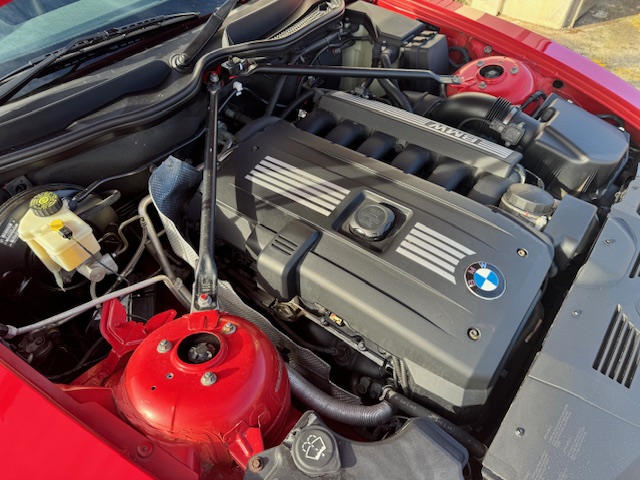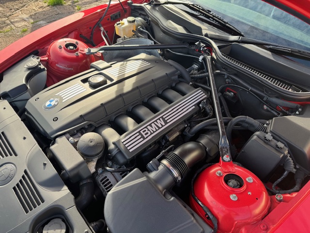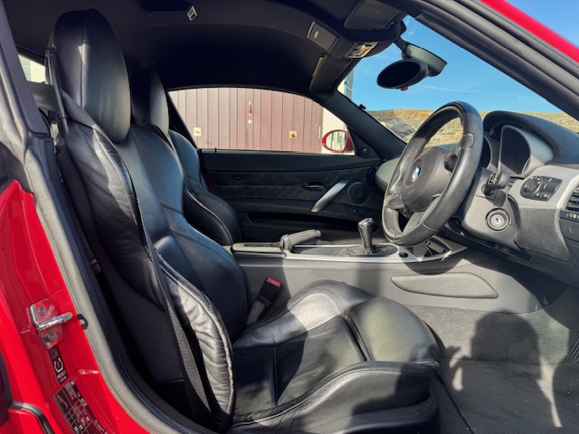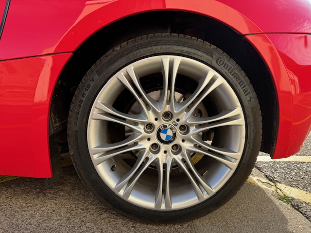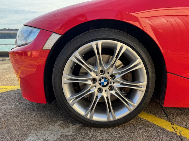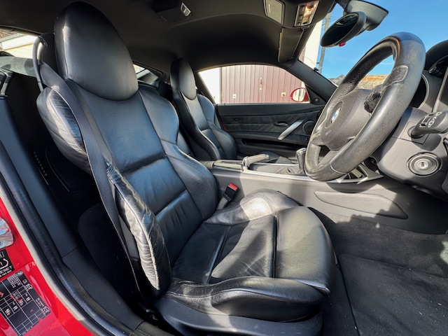 The exterior is finished in the striking and increasingly rare Hellrot Red, a colour very seldom seen on UK-market Z4 Coupes. The bodywork is in excellent condition, and the paintwork has benefited from a recent polish and ceramic coating, ensuring a deep gloss and durable protection. The alloy wheels have been professionally refurbished, complementing the car’s appearance, and it now wears recently fitted Continental Sport tyres that provide excellent grip.