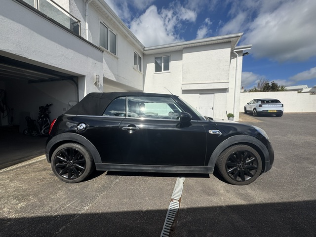 The bodywork is in very good condition overall, with the black paintwork presenting well across the car. There are a few minor bumper scuffs and small dents consistent with general day-to-day use. The black alloy wheels continue the same theme, showing some light scuff marks. The vehicle has always been kept garaged under current ownership. The soft-top convertible roof is in perfect condition and operates exactly as it should.