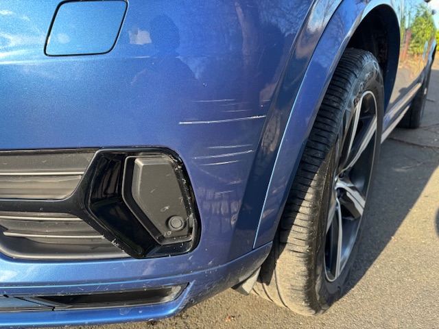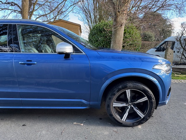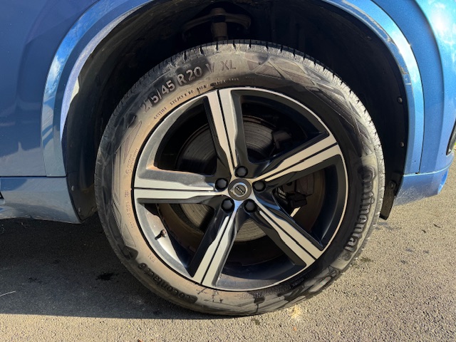 The blue metallic exterior is in very good condition overall, with only a small scuff on one bumper corner — otherwise showing exceptionally well. The 20-inch alloy wheels are also in good order, and all tyres retain a decent amount of tread.