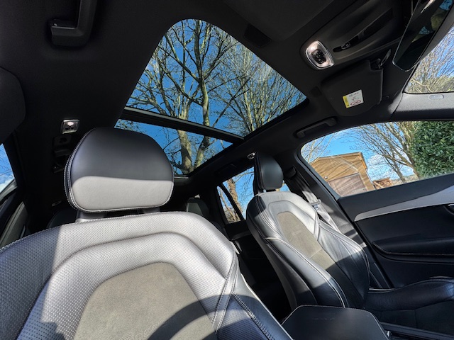 Inside, the cabin features black leather and suede seats, which present well with only light, age-related wear and creasing. The interior is clean and well cared for, finished to Volvo’s typically high standard. A panoramic glass roof enhances the sense of space and light throughout the cabin.